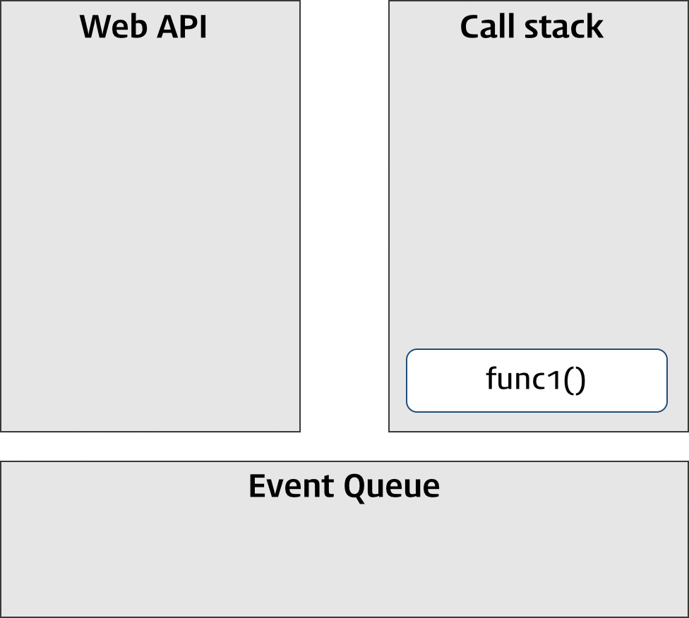 Event Loop Modl - func1 호출시 Call Stack이 쌓이고 func2를 호출하여 차례로 Stack이 쌓이며 setTimeout이 호출됨