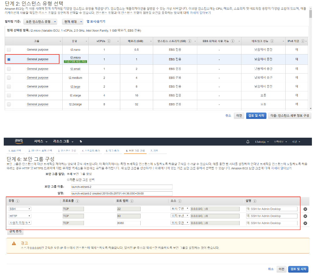 ② 인스턴스 유형 및 보안그룹 구성
