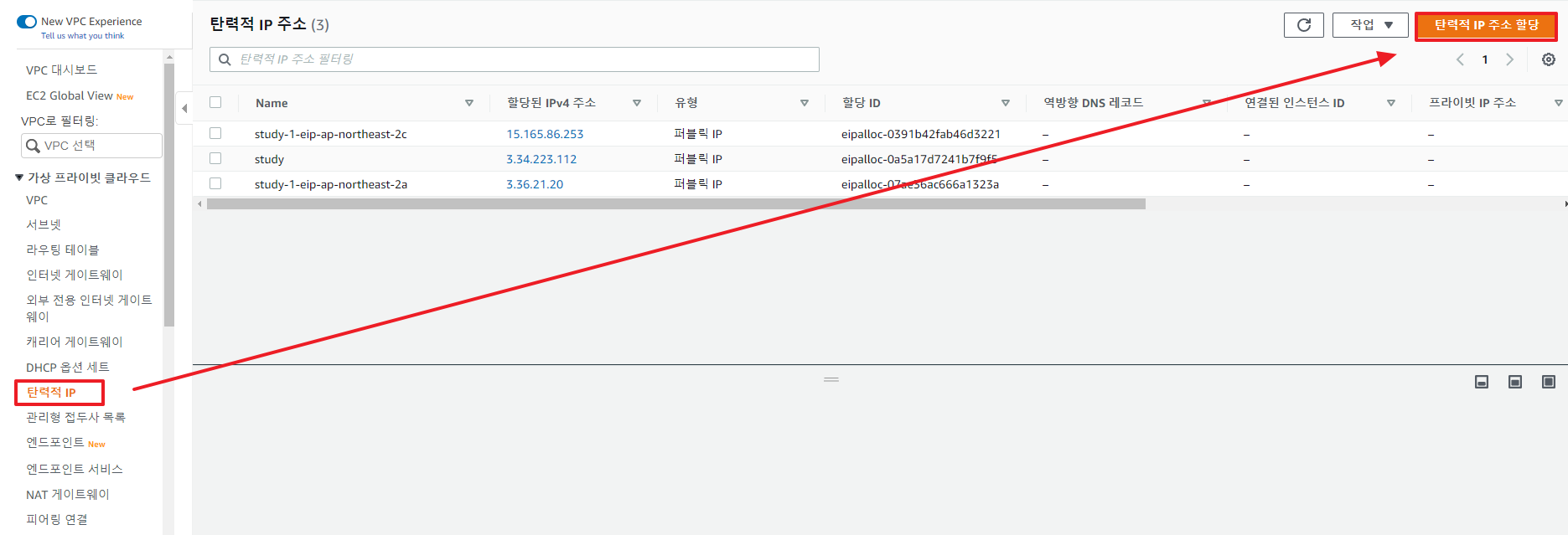 ① Elastic IP 생성
